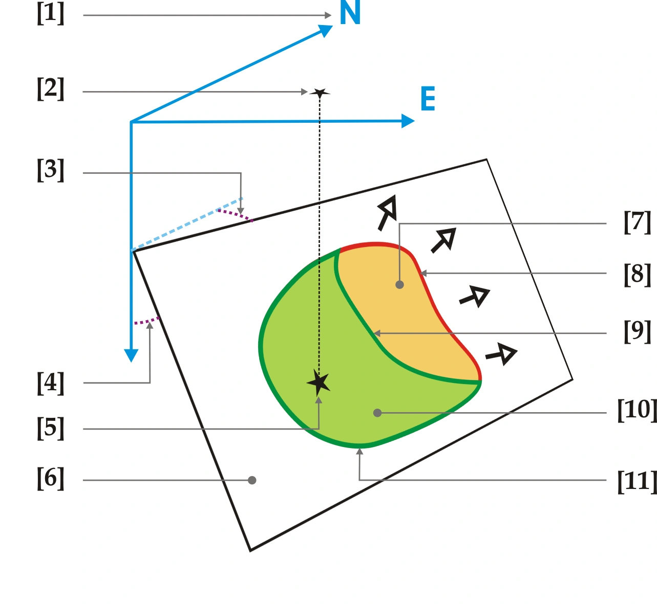 8 + 11: 断層面 または 震源域(断層の最大破壊域)